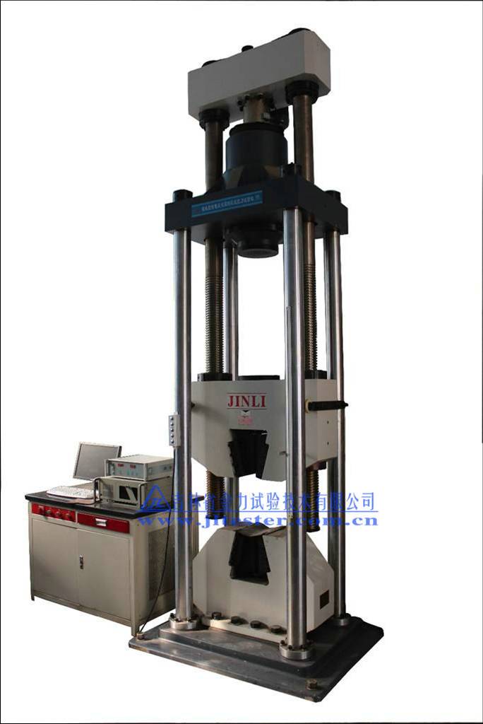 | 用    途     JAW微機控制電液伺服鋼絞線拉力試驗機是符合現(xiàn)代鋼絞線力學(xué)檢驗要求的新型試驗設(shè)備。由于采用小流量、寬調(diào)速范圍的電液比例閥及構(gòu)思新穎的數(shù)字式脈沖調(diào)寬閉環(huán)控制系統(tǒng),充分應(yīng)用計算機技術(shù),實現(xiàn)多功能的試驗控制,其技術(shù)指標(biāo)及性能達(dá)到現(xiàn)代國外同類產(chǎn)品先進(jìn)水平。是科研生產(chǎn)、仲裁檢驗所需理想的先進(jìn)檢測設(shè)備。該機技術(shù)參數(shù)完全符合國標(biāo)GB/T 5224-1995《預(yù)應(yīng)力混凝土用鋼絞線》及美國標(biāo)準(zhǔn)ASTMA 416-99a的要求。   主要功能特點: ◆測量、控制系統(tǒng)采用計算機總線設(shè)計。 ◆力、變形測量分辨率1/200000。位移測量分辨率0.002mm。 ◆自動調(diào)零、自動標(biāo)定、連續(xù)全量程測量不分檔。 ◆采用數(shù)字式脈沖調(diào)寬技術(shù),實現(xiàn)全數(shù)字式閉環(huán)伺服控制。 ◆數(shù)字式電液比例閥作控制元件,抗污染能力強,可實現(xiàn)長期無故障運行。 ◆可進(jìn)行試驗力、變形、位移等速率控制并保持。 ◆無級調(diào)速,各種控制方式及速率可在試驗過程中任意平滑切換。 ◆具有手動、自動、程序控制功能。 ◆報告自定義,曲線放大及曲線疊加,在試驗過程中可切換顯示七種真實的試驗曲線。 ◆試驗軟件采用VC++語言編程,可在Windows98、2000、XP、NT操作系統(tǒng)下工作。 ◆數(shù)據(jù)查詢、統(tǒng)計、分析功能,可進(jìn)行單根或組試樣試驗。 ◆可進(jìn)行試驗室間微機聯(lián)網(wǎng)。 ◆自動提示裝、卸引伸計。 ◆多種保護(hù),軟件自檢、自診斷功能,提示發(fā)生故障之處,無須廠家現(xiàn)場維修,只須更換計算機內(nèi)相應(yīng)的功能卡即可,維護(hù)簡單方便。 ◆完整的數(shù)據(jù)庫軟件接口供用戶使用,軟件升級只須通過郵寄光盤或E-mail傳送即可。