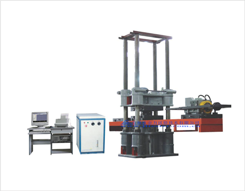 |   用    途:     YAJ微機(jī)控制電液伺服壓剪試驗(yàn)機(jī)用于各種橋梁板式、盆式橡膠支座進(jìn)行抗壓、抗剪切力的復(fù)合條件下,檢測(cè)橡膠支座的軸向徑向抗壓、抗剪、轉(zhuǎn)角力學(xué)試驗(yàn)??蛇M(jìn)行橡膠支座的抗壓彈性模量、抗剪彈性模量,容許剪切角,摩擦系數(shù)和極限抗壓強(qiáng)度等力學(xué)性能試驗(yàn)。本機(jī)采用P4工控計(jì)算機(jī)為內(nèi)核的全數(shù)字閉環(huán)電液伺服控制系統(tǒng)控制,可完全滿足《JT/T4-2004公路橋梁板式橡膠支座等所規(guī)定的力學(xué)性能檢測(cè)規(guī)則》要求。也可以進(jìn)行混凝土等其它材料試樣的彈性模量及壓縮性能檢測(cè)并可完成低周循環(huán),三角波、正弦波、梯形波等組合波形試驗(yàn),是科研生產(chǎn),仲裁檢驗(yàn)所需的先進(jìn)檢測(cè)設(shè)備。 本機(jī)由四立柱式軸向液壓壓力試驗(yàn)系統(tǒng),橫向臥式剪力試驗(yàn)系統(tǒng),轉(zhuǎn)角試驗(yàn)裝置,多功能液壓伺服油源,微機(jī)伺服測(cè)控系統(tǒng)五部分組成。   主要功能特點(diǎn): ◆控制測(cè)量系統(tǒng)采用美國(guó)AD公司原裝器件,測(cè)量控制精確可靠,故障率極低。試驗(yàn)力和變形測(cè)量分辨率可達(dá)1/200000。位移測(cè)量分辨率可達(dá)2m。 ◆伺服油源采用日本原裝內(nèi)齒輪泵,低噪音,可適應(yīng)長(zhǎng)時(shí)連續(xù)運(yùn)行。 ◆主要傳感元件采用進(jìn)口元件制造,保證了測(cè)量精確可靠,并采用微機(jī)數(shù)據(jù)處理,保證計(jì)算數(shù)據(jù)可靠、公正。 ◆整機(jī)采用了智能化設(shè)計(jì),自動(dòng)化程度高,測(cè)量準(zhǔn)確、功能齊全、可靠性高、操作簡(jiǎn)單、使用方便。可自動(dòng)完成抗壓彈模試驗(yàn),抗剪彈模及容許角試驗(yàn),抗壓強(qiáng)度試驗(yàn),摩擦系數(shù),轉(zhuǎn)角試驗(yàn)。 ◆試驗(yàn)軟件采用自主研發(fā)的VC++語(yǔ)言編程,先進(jìn)的模塊化設(shè)計(jì),軟件便于擴(kuò)展功能且    運(yùn)行可靠,可在Windows98、2000、XP、NT操作系統(tǒng)下工作并有完善的軟件自撿功能。