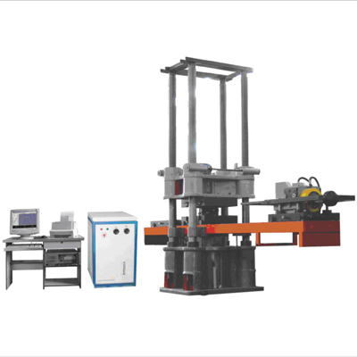 | 用    途     主要用于各種橋梁板式、盆式橡膠支座進(jìn)行抗壓、抗剪切力的復(fù)合條件下,檢測橡膠支座的軸向徑向抗壓、抗剪、轉(zhuǎn)角力學(xué)試驗(yàn)??蛇M(jìn)行橡膠支座的抗壓彈性模量、抗剪彈性模量,容許剪切角,摩擦系數(shù)和極限抗壓強(qiáng)度等力學(xué)性能試驗(yàn)。本機(jī)采用P4工控計(jì)算機(jī)為內(nèi)核的全數(shù)字閉環(huán)電液伺服控制系統(tǒng)控制,可完全滿足《JT/T4-2004公路橋梁板式橡膠支座等所規(guī)定的力學(xué)性能檢測規(guī)則》要求。也可以進(jìn)行混凝土等其它材料試樣的彈性模量及壓縮性能檢測并可完成低周循環(huán),三角波、正弦波、梯形波等組合波形試驗(yàn),是科研生產(chǎn),仲裁檢驗(yàn)所需的先進(jìn)檢測設(shè)備。 本機(jī)由四立柱式軸向液壓壓力試驗(yàn)系統(tǒng),橫向臥式剪力試驗(yàn)系統(tǒng),轉(zhuǎn)角試驗(yàn)裝置,多功能液壓伺服油源,微機(jī)伺服測控系統(tǒng)五部分組成。   主要功能特點(diǎn) ◆控制測量系統(tǒng)采用美國AD公司原裝器件,測量控制精確可靠,故障率極低。     試驗(yàn)力和變形測量分辨率可達(dá)1/200000。位移測量分辨率可達(dá)2m。 ◆伺服油源采用日本原裝內(nèi)齒輪泵,低噪音,可適應(yīng)長時連續(xù)運(yùn)行。 ◆主要傳感元件采用進(jìn)口元件制造,保證了測量精確可靠,并采用微機(jī)數(shù)據(jù)處理,保證計(jì)算數(shù)據(jù)可靠、公正。 ◆整機(jī)采用了智能化設(shè)計(jì),自動化程度高,測量準(zhǔn)確、功能齊全、可靠性高、操作簡單、使用方便。可自動完成抗壓彈模試驗(yàn),抗剪彈模及容許角試驗(yàn),抗壓強(qiáng)度試驗(yàn),摩擦系數(shù),轉(zhuǎn)角試驗(yàn)。 ◆試驗(yàn)軟件采用自主研發(fā)的VC++語言編程,先進(jìn)的模塊化設(shè)計(jì),軟件便于擴(kuò)展功能且    運(yùn)行可靠,可在Windows98、2000、XP、NT操作系統(tǒng)下工作并有完善的軟件自撿功能。  主要技術(shù)規(guī)格